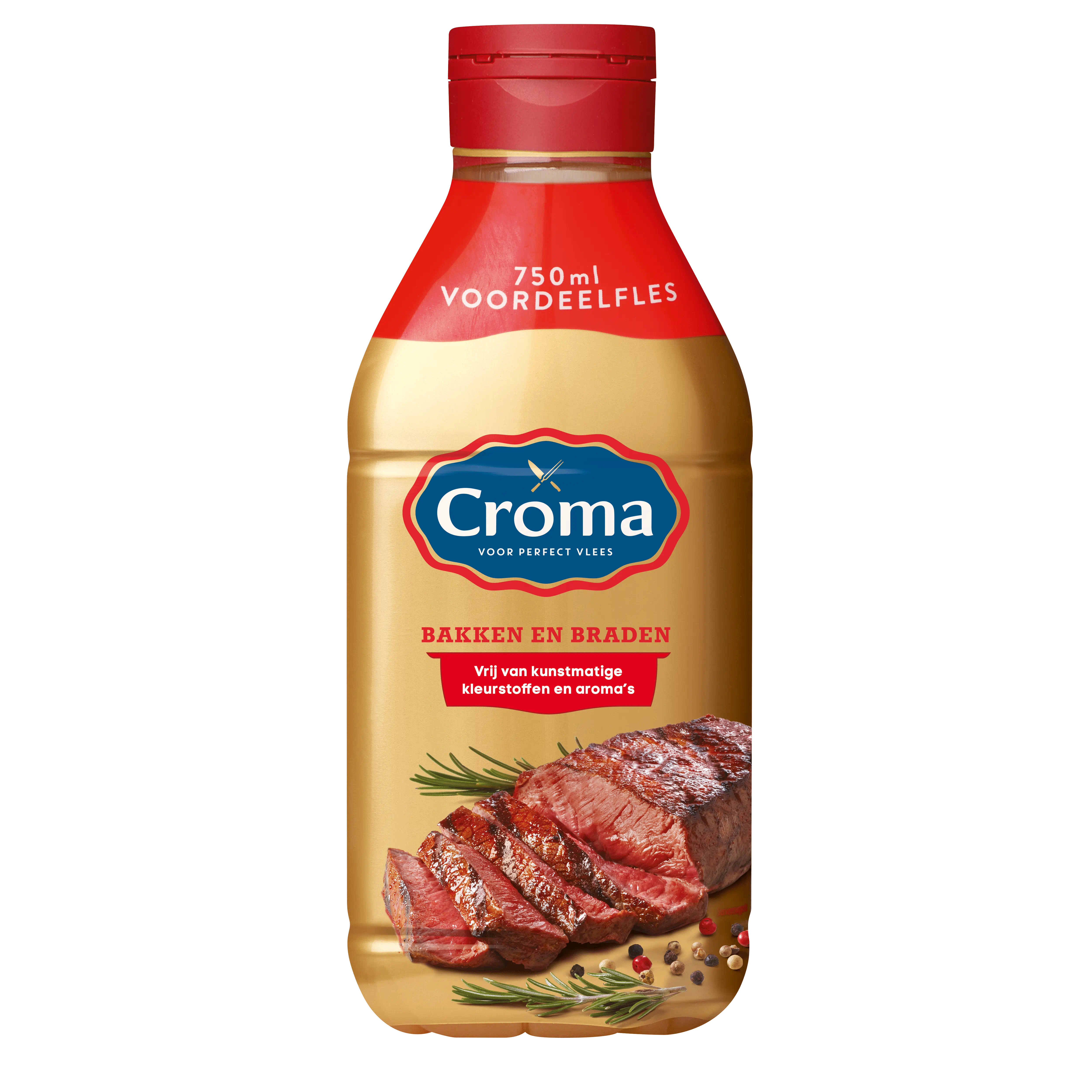 Croma bevat geen water, waardoor het niet vanzelf zichzelf spat. Croma geeft vlees en jus een heerlijke, karakteristieke smaak. Croma bruint en smelt sneller dan gewone margarine, Croma komt daardoor eerder op een hoge temperatuur en schroeit het vlees direct dicht. Het vlees blijft hierdoor lekker mals en sappig. Vlees bak je in Croma!